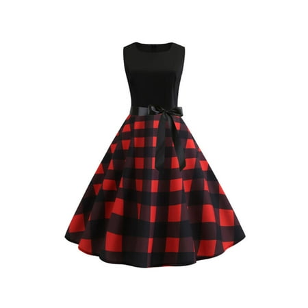 Women Elegant Houndstooth Retro Vintage 1950s 60s Rockabilly Swing