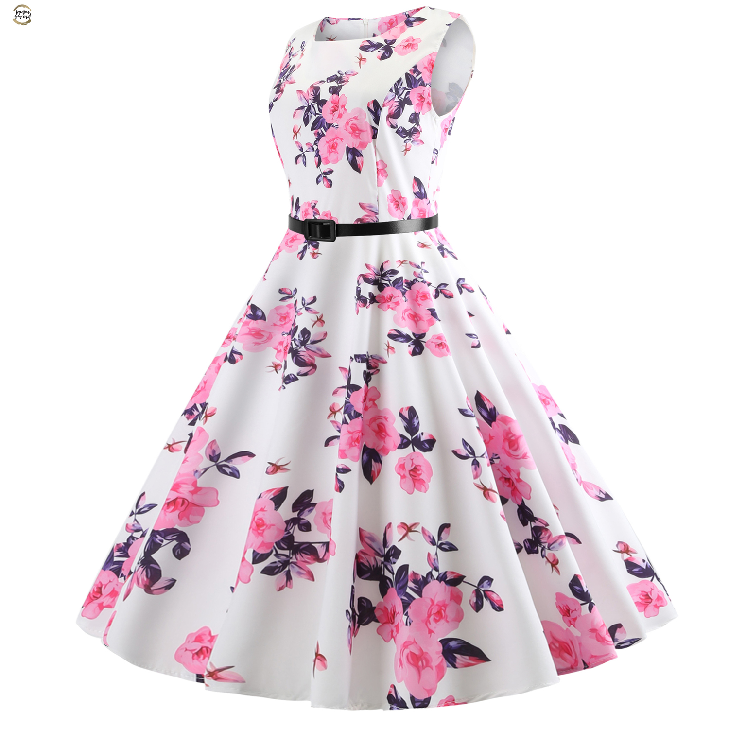 Vintage Party Dresses Printing Floral Rockabilly Swing Dress